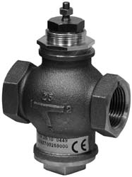 Двухходовые (STV) и трхходовые (STR) вентили производства Regin (Швеция) предназначены для регулирования расхода горячей и холодной воды, а также пара в системах отопления, вентиляции и кондиционирования. Вентили выпускаются в диапазоне от KVS=0,63 с присоединительным диаметром 1/2 до KVS=39 с присоединительным диаметром 2. В зависимости от типа используемого привода вентили могут работать в режиме трхпозиционного или пропорционального (сигнал 010 В) регулирования. Трхходовые вентили используются в качестве смесительного устройства. Регулирование у вентилей STV/STR осуществляется с помощью возвратнопоступательного перемещения штока. Двухходовой вентиль полностью открыт, когда шток находится в нижнем положении, и закрыт, когда шток находится в верхнем положении. Трхходовой вентиль перекрывает расположенные один напротив другого проходные отверстия 2 и 1, когда шток находится в верхнем положении. В этом же положении штока вентиль открыт между отверстиями 3 и 1. Если шток находится в нижнем положении, трхходовой вентиль полностью открыт между отверстиями 2 и 1 и закрыт между отверстиями 3 и 1. Вентили должны устанавливаться так, чтобы направление стрелки совпадало с направлением потока жидкости. Вентили STV/STR следует устанавливать штоком вверх или в сторону (горизонтально). Нельзя устанавливать вентиль штоком вниз. Если рабочая среда имеет высокую температуру, то вентиль следует устанавливать штоком в горизонтальном положении, чтобы предотвратить нагрев привода вентиля. В зависимости от типа используемого привода VLT.../VLM... вентили могут работать в режиме трхпозиционного или пропорционального (сигнал 010 В) регулирования.